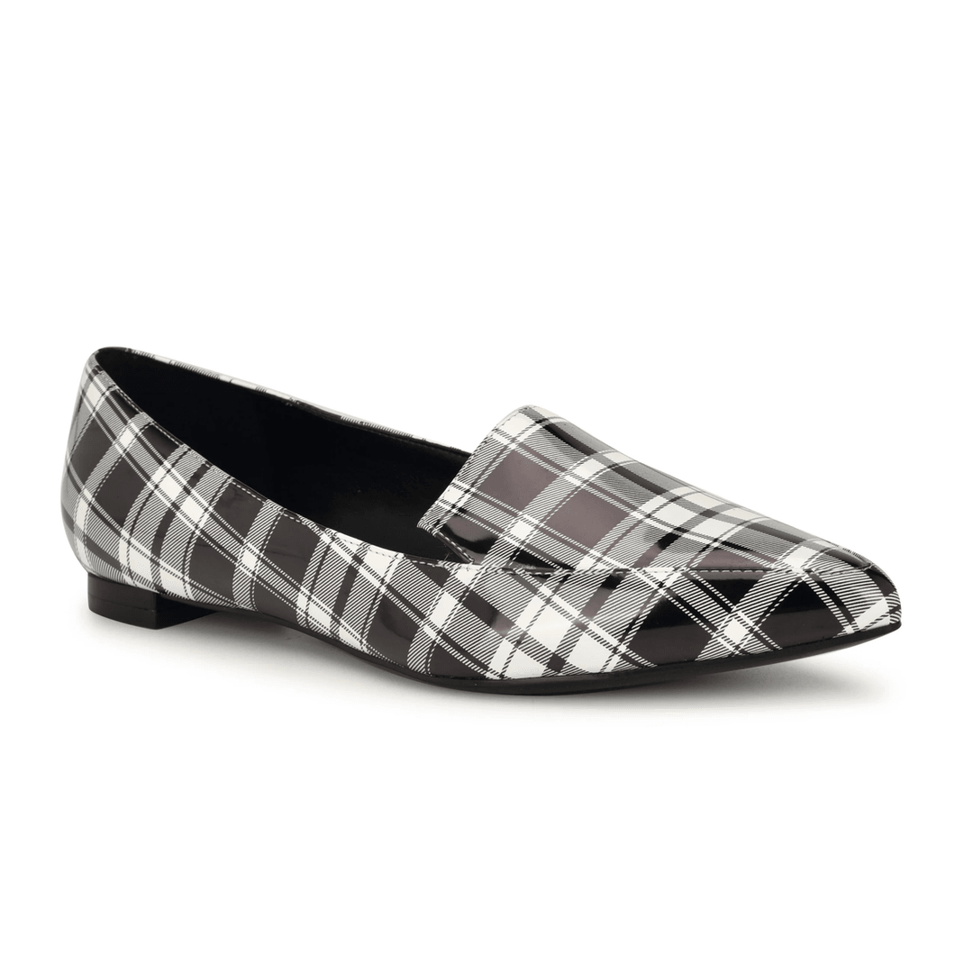 Nine West Abay Smoking Flats Black/White Patent Plaid