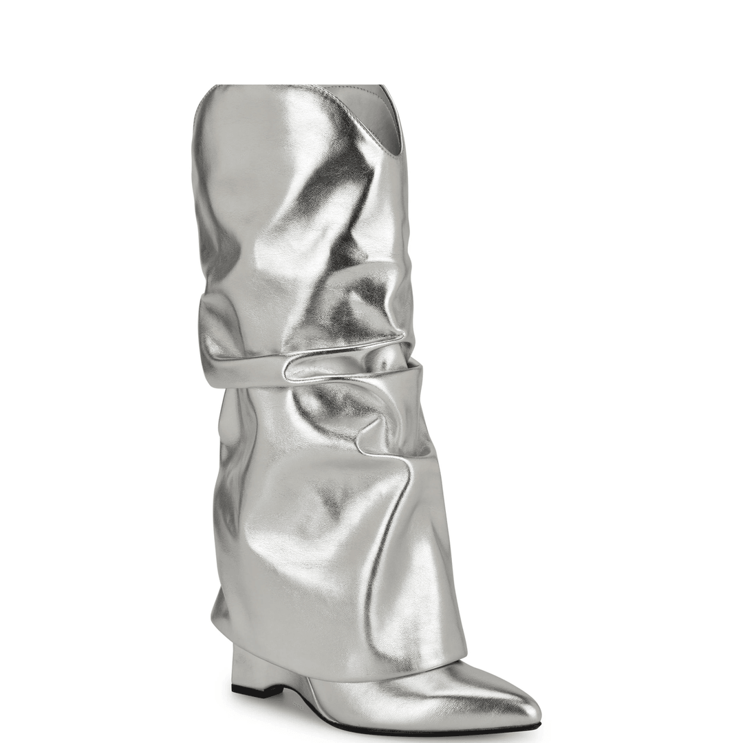 Step into Style with Nine West Amazin Slouch Western Boots Silver