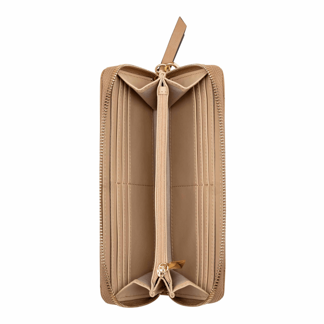 The Nine West Anders Zip Around with Wristlet in Dark Camel is expertly crafted to provide both style and practicality. Its sleek silhouette fits easily into any handbag, making it an essential accessory for busy lifestyles. The zip-around closure keeps your essentials secure while the wristlet strap offers convenience when you're on the go.