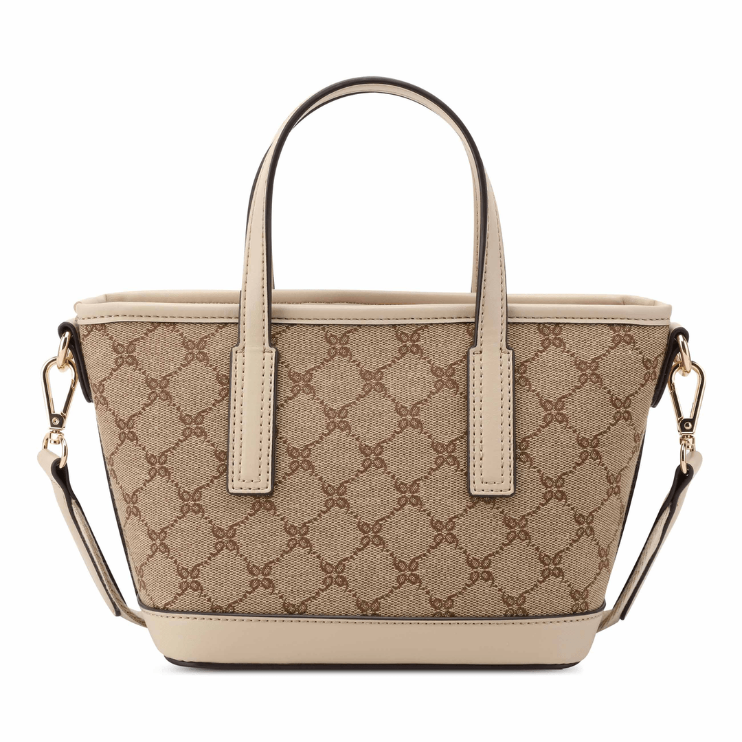 Discover the Nine West Avaya Mini Tote Crossbody in Mocha Logo/Beige