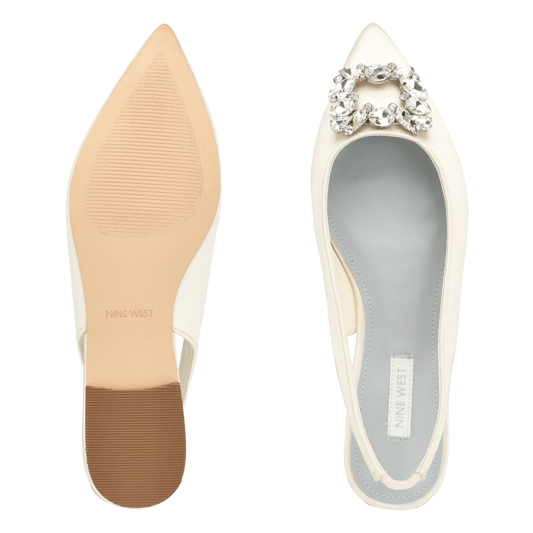 Nine West Blingy Slingback Flats Ivory Crystal Satin