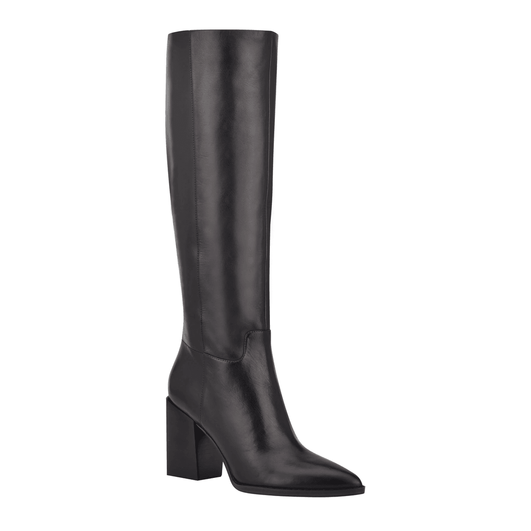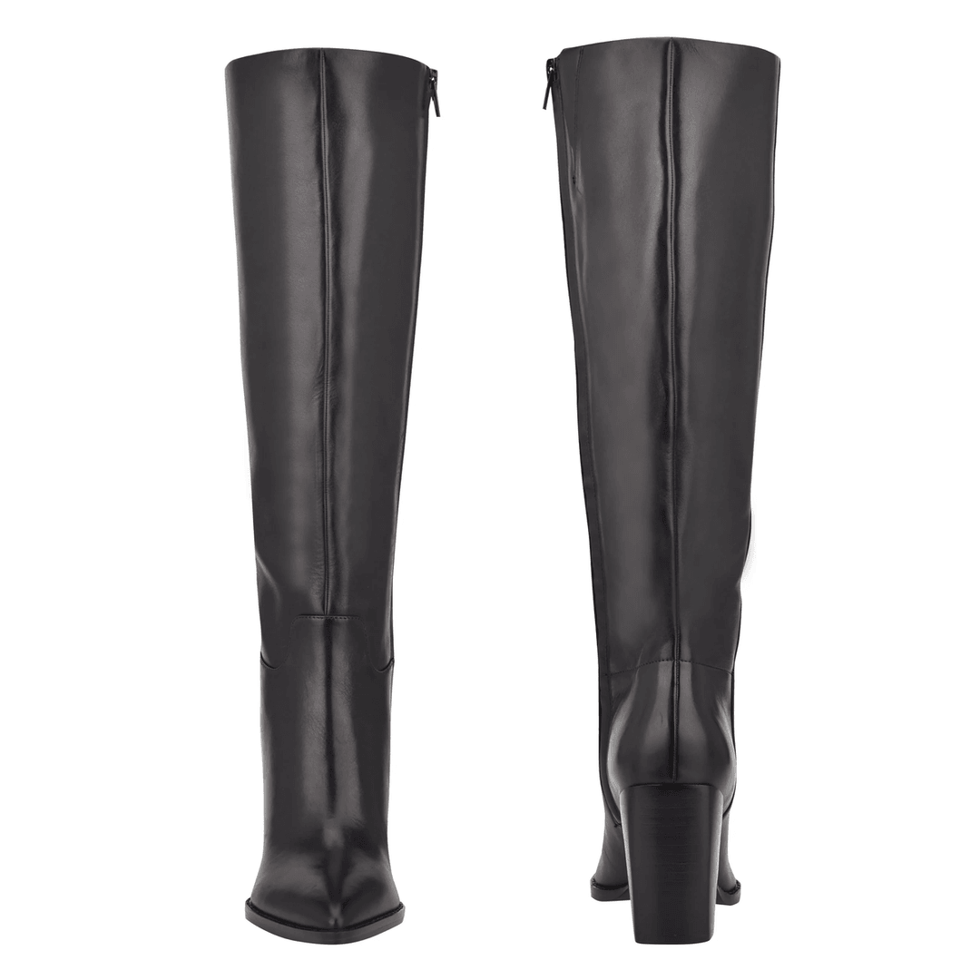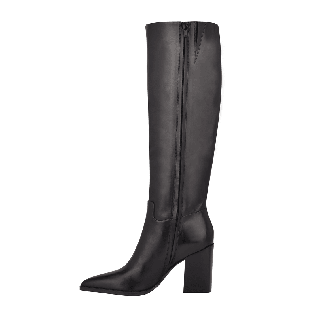 The Nine West Brixe Heeled Leather Boots in Black Leather are a must-have addition to your fall wardrobe. With their sleek, knee-high design and pointed toe, these boots effortlessly elevate any outfit for both casual and formal occasions.