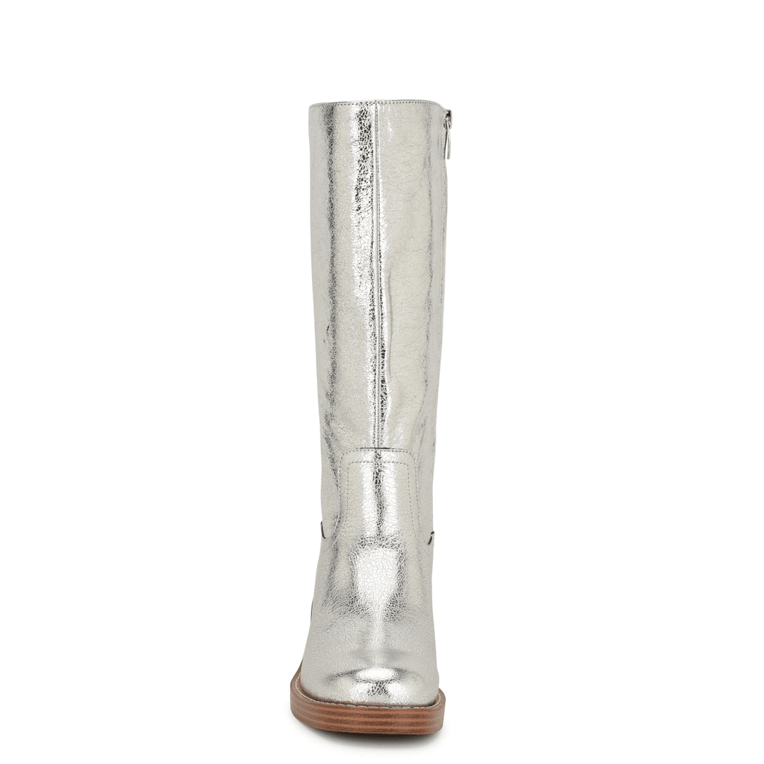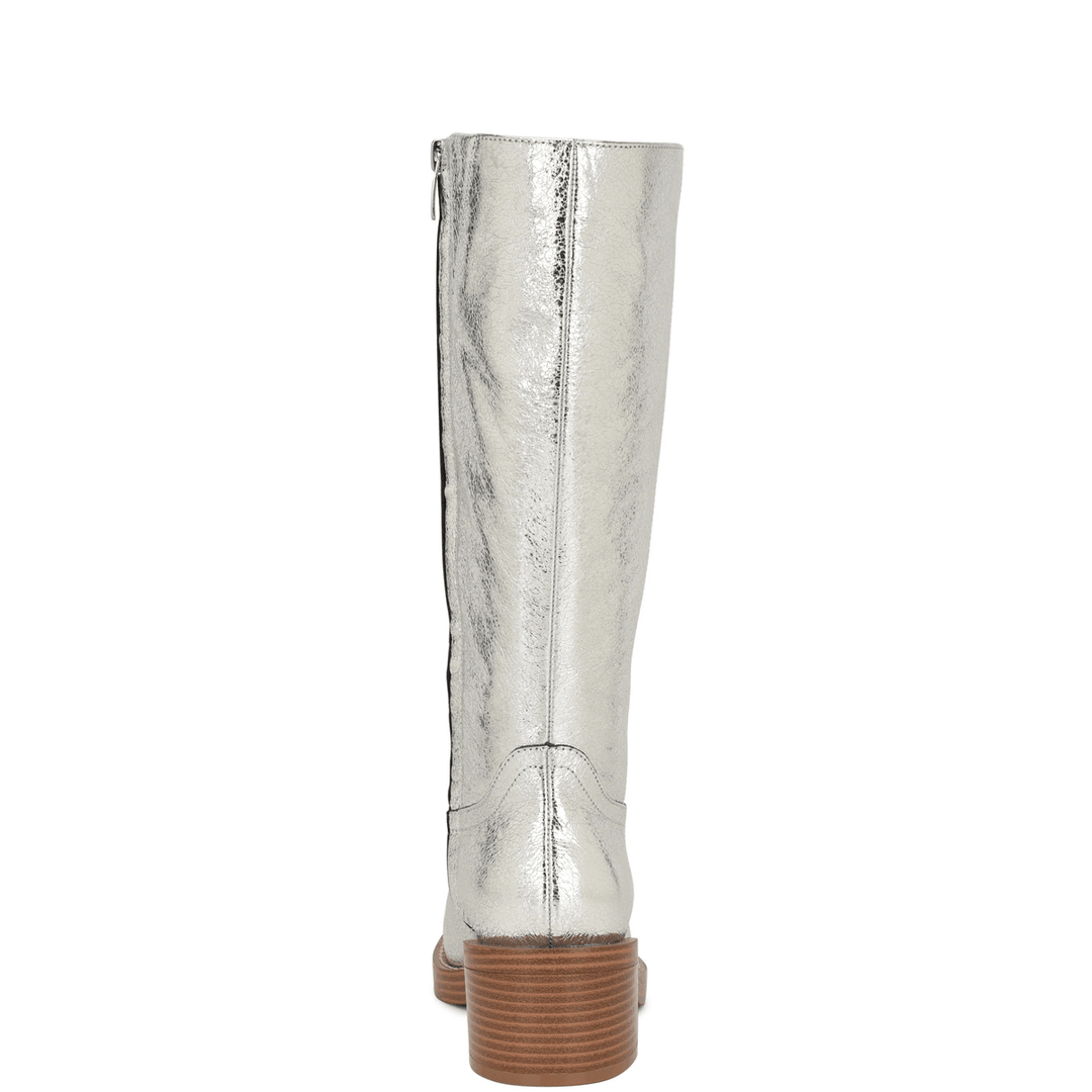 Nine West Broklyn Block Heel Casual Leather Boots Silver Leather