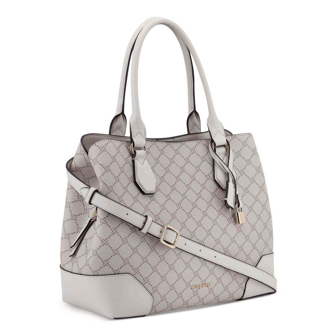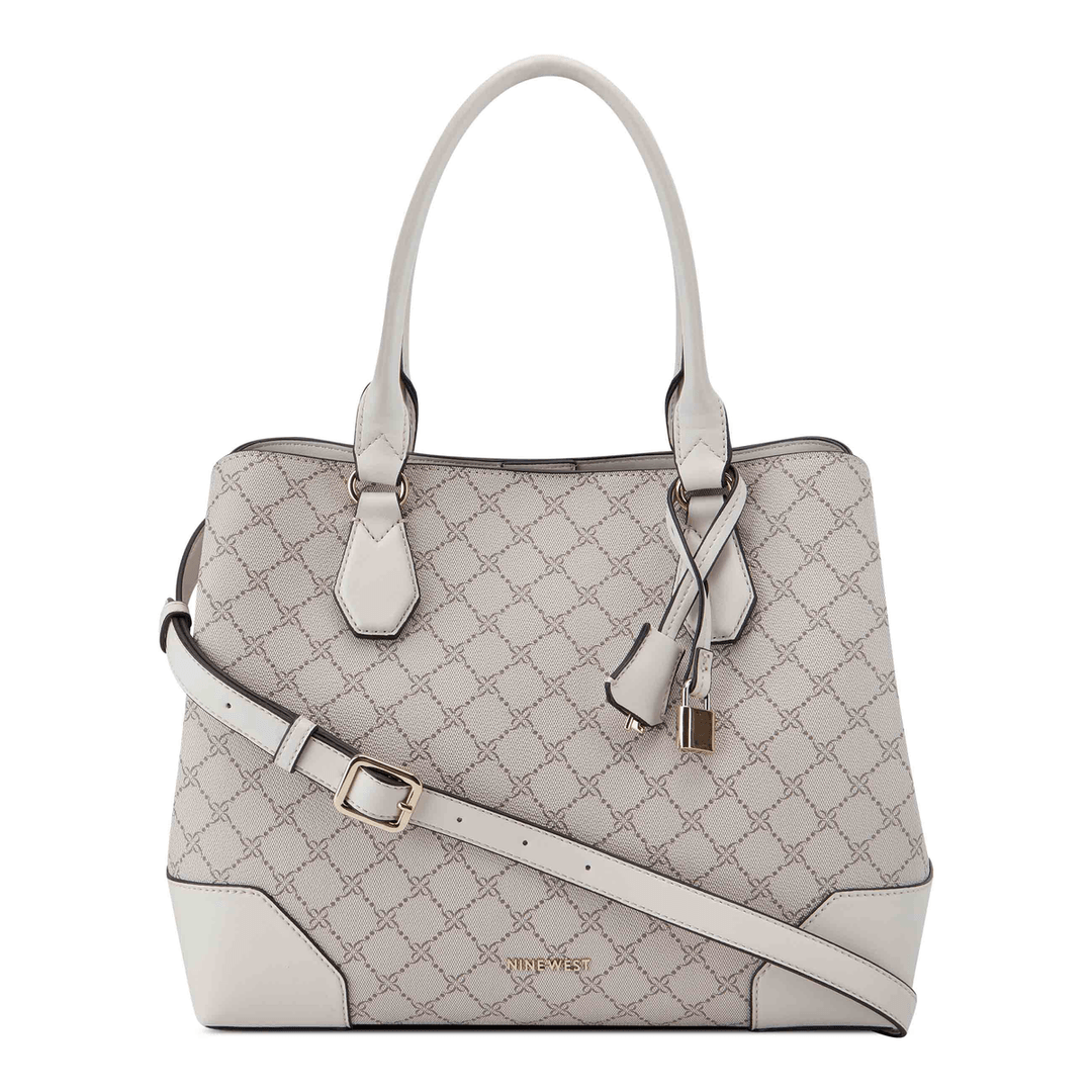 Discover the Nine West Brooklyn Jet Set Carryall in Mushroom Logo Milk