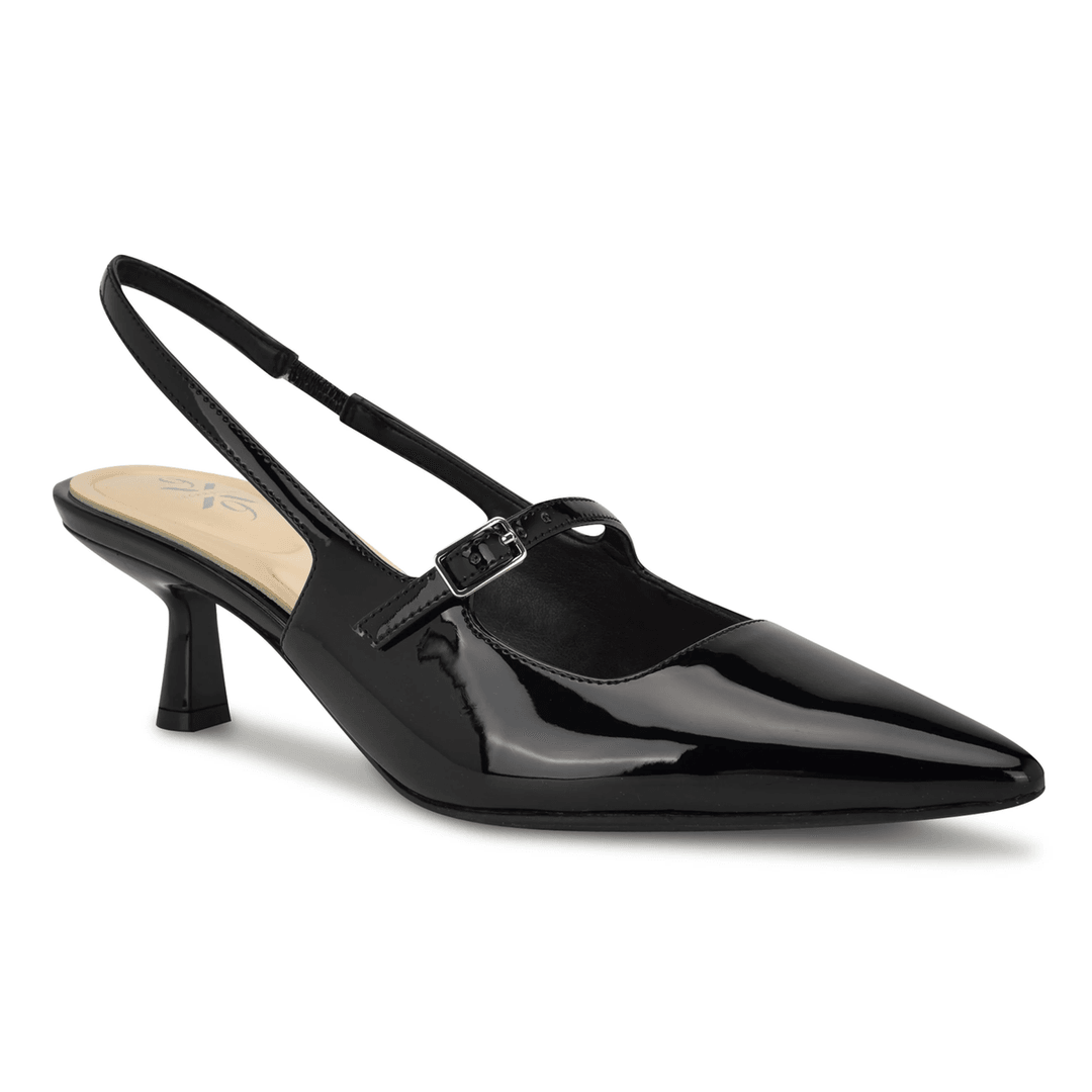 Elevate your footwear collection with the Nine West Calun 9x9 Mary Jane Slingbacks in Black Patent. Designed for the modern woman, these chic slingbacks blend fashion with unparalleled comfort.