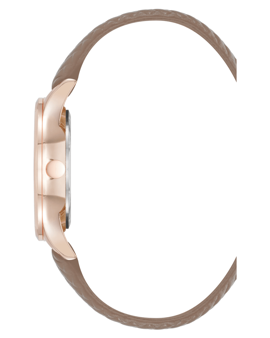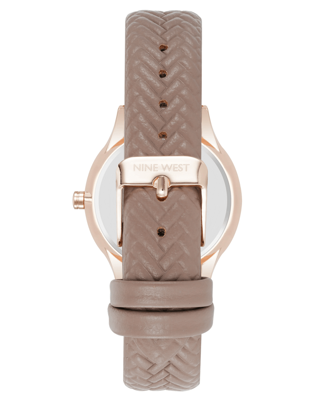Don’t miss out on the chance to own the Nine West Chevron Pattern Strap Watch Tan/Rose Gold. Shop now and elevate your accessory game with this beautifully designed watch!