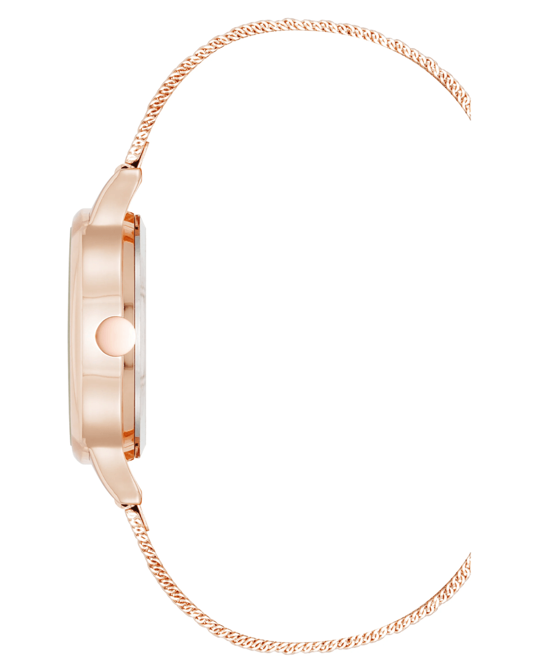 The Nine West Crystal Accented Dial Mesh Watch in Rose Gold is more than just a timepiece; it's a statement of elegance and sophistication. With its stunning design and luxurious materials, this watch is perfect for any occasion, whether it's a casual outing or a formal event.