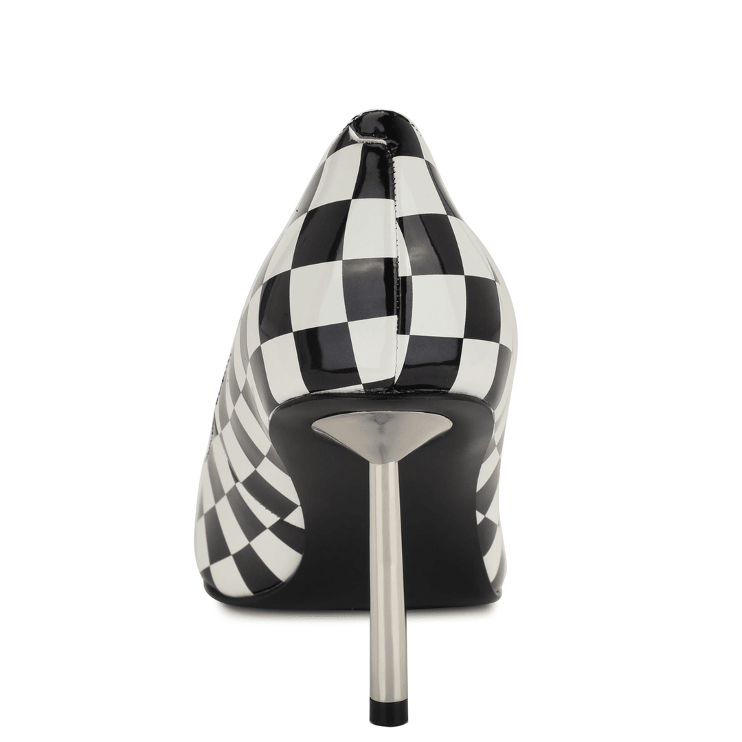Elevate your fashion game with the Nine West Deonne Dress Pumps in a striking black and white checker pattern. These chic pumps are designed to make a statement, combining elegance with comfort for any occasion.