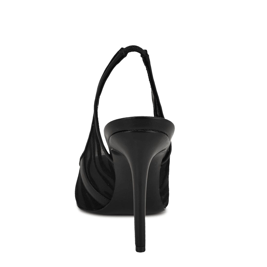 Step into sophistication with the Nine West Feather Pointy Toe Slingback Pumps Zebra Mesh. These stunning high heel stiletto pumps are a timeless addition to any wardrobe, offering the perfect blend of elegance and versatility.