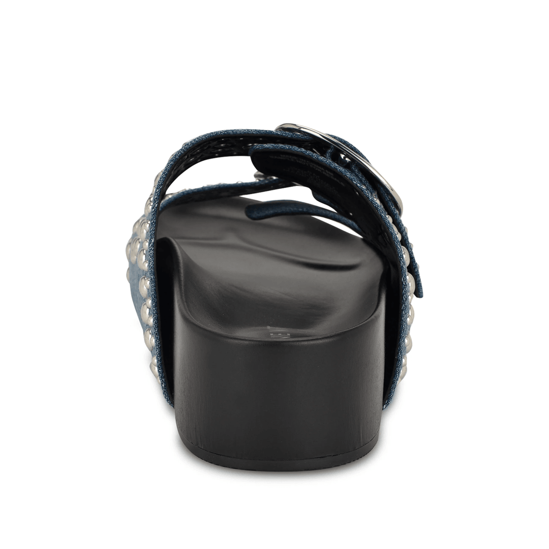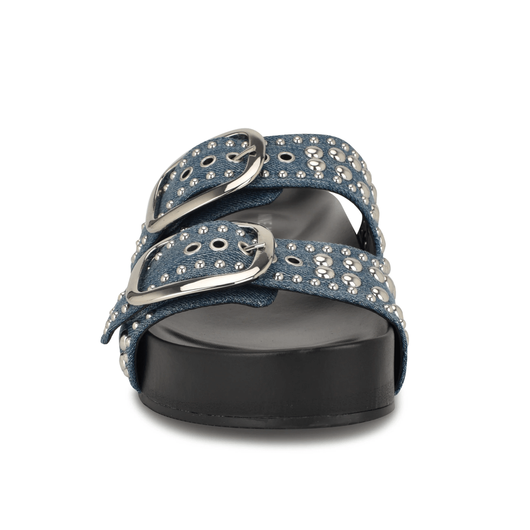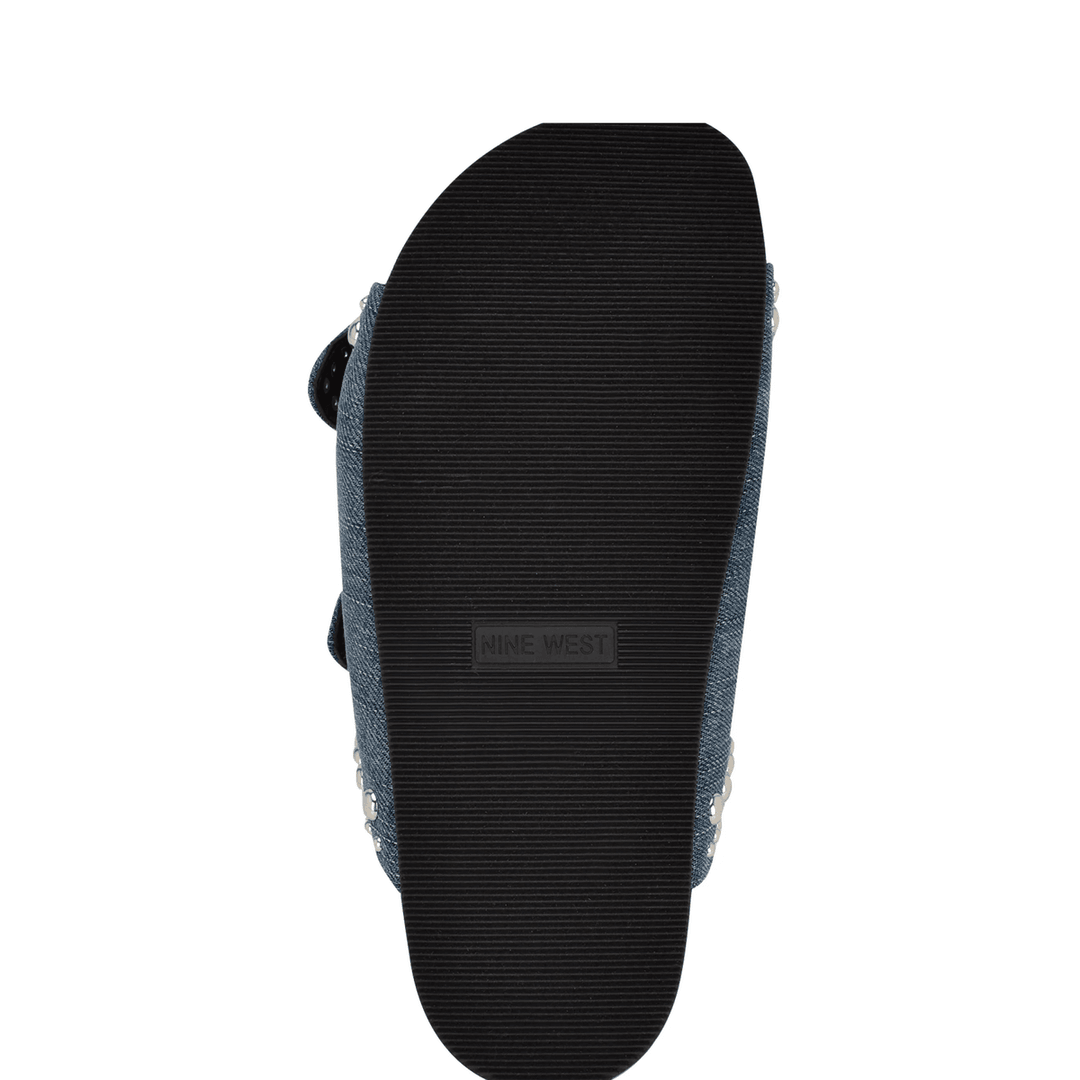 Discover the Nine West Flinne Studded Footbed Sandals Denim
