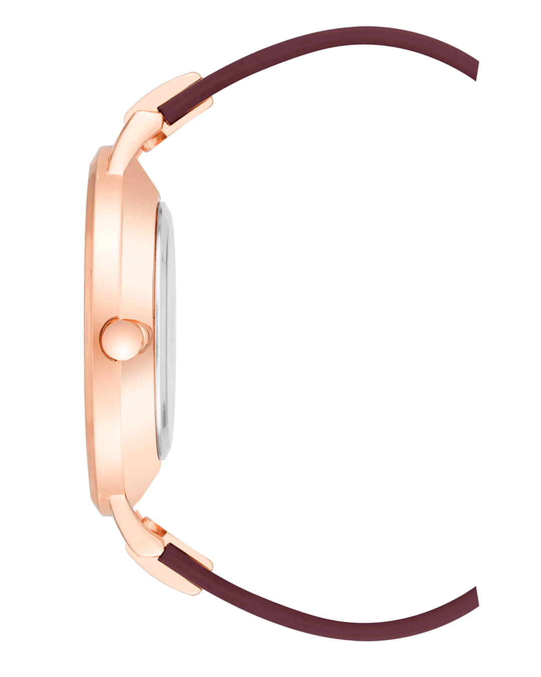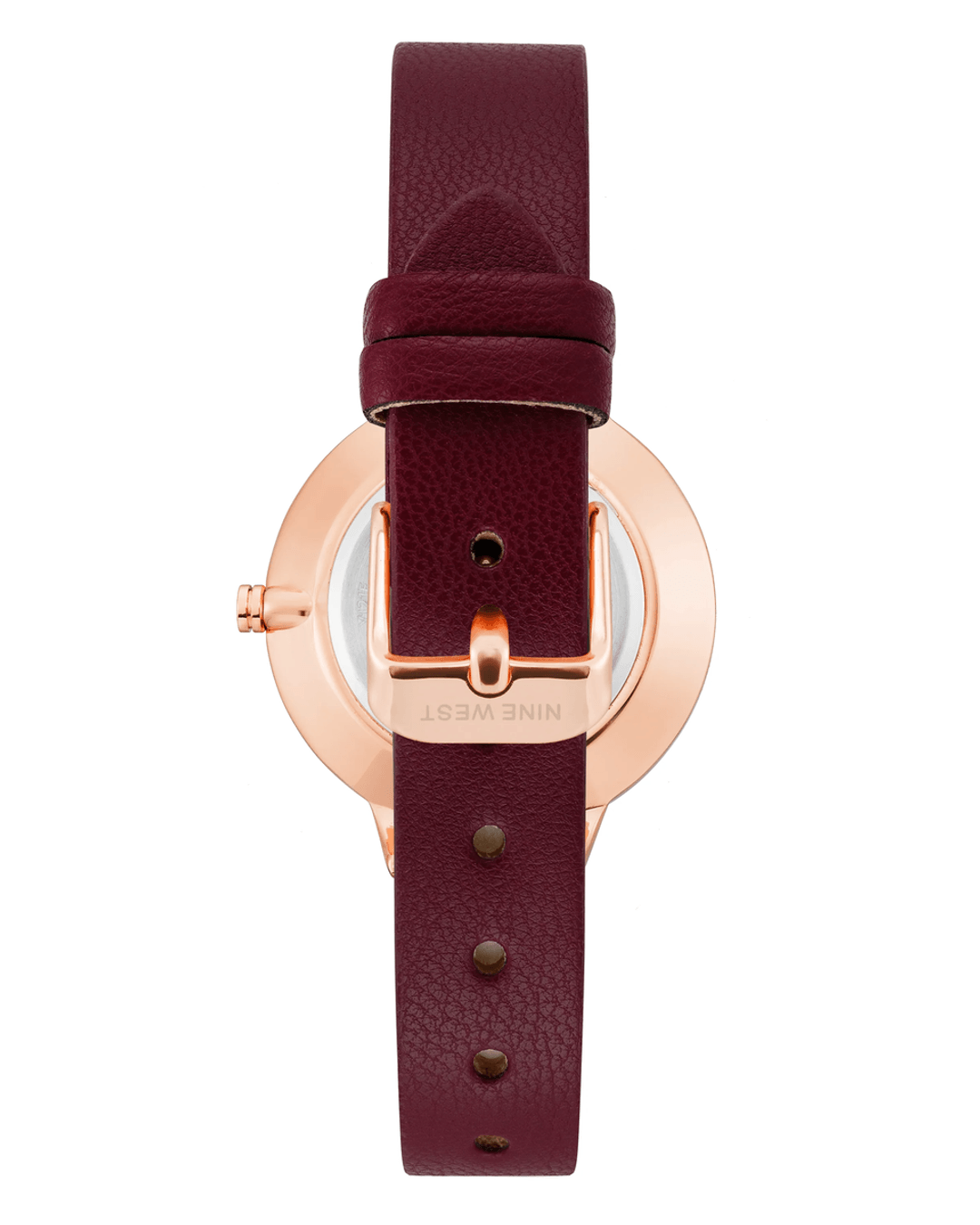 Nine West Floral Dial Strap Watch Burgundy/Rose Gold