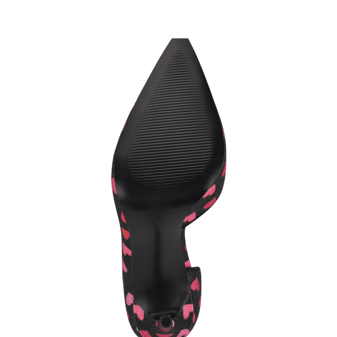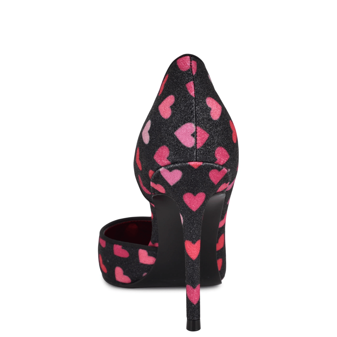 Nine West Folowe d'Orsay Pointy Toe Pumps Black Glitter Heart Print