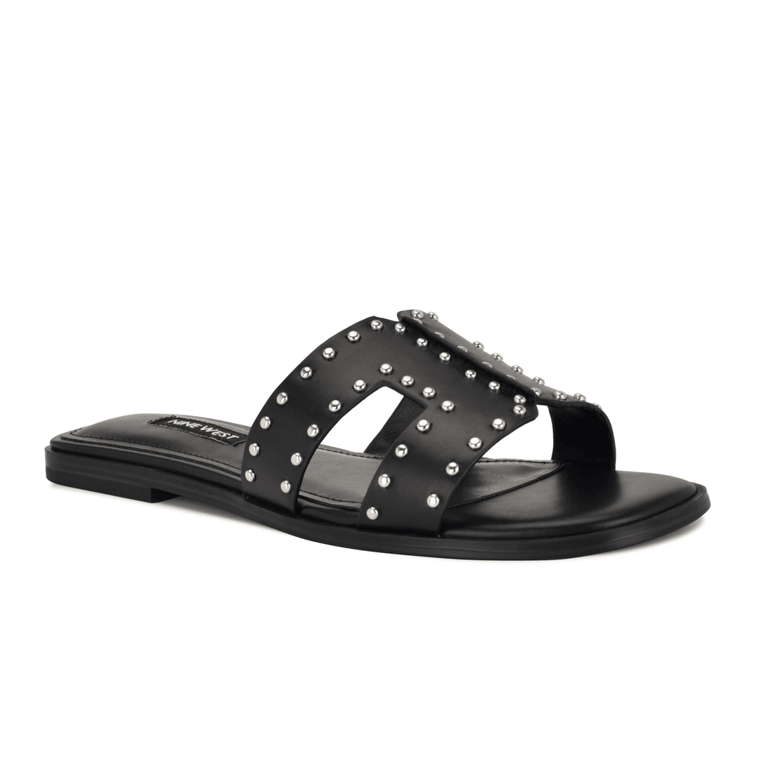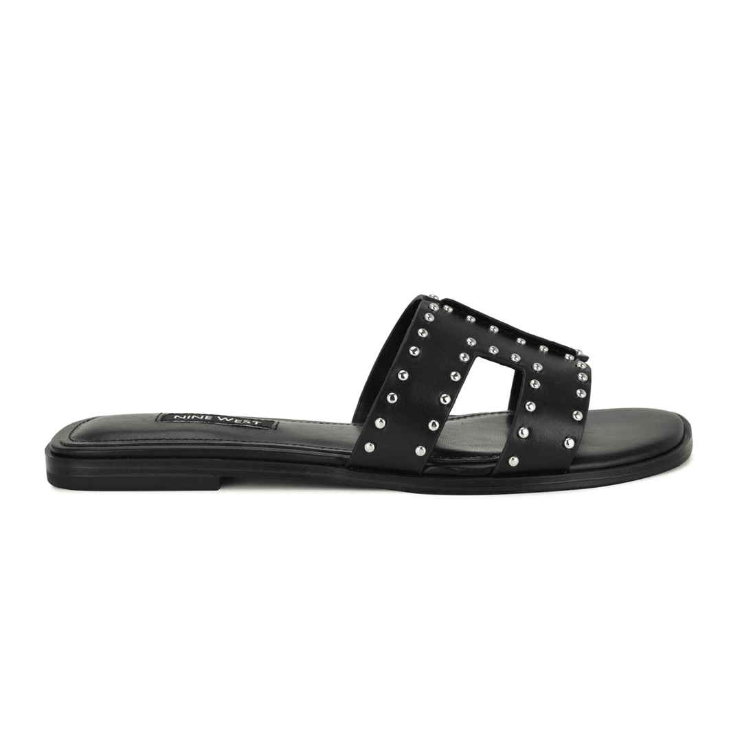 Discover the Nine West Giny Slip-On Flat Studded Sandals in Black