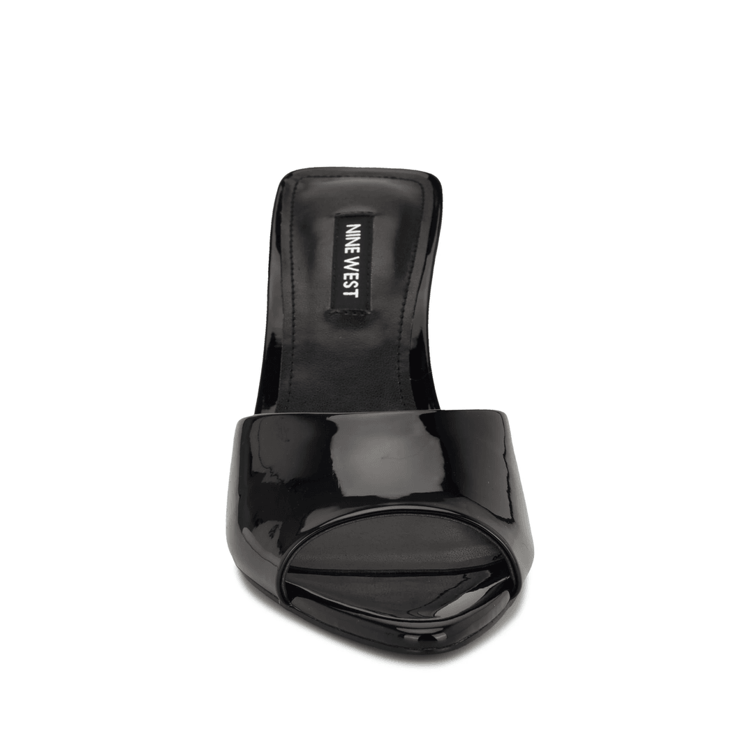 Nine West Hather Dress Slide Sandals Black Patent