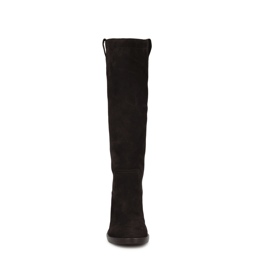 Nine West Hecee Block Heel Tailored Leather Boots Dark Brown Suede