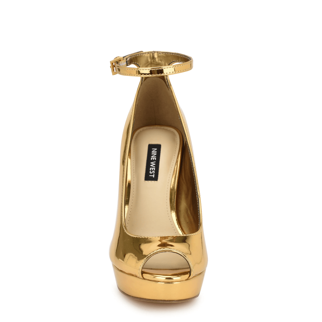Nine West Hinko Peep Toe Platform Pumps Gold Patent
