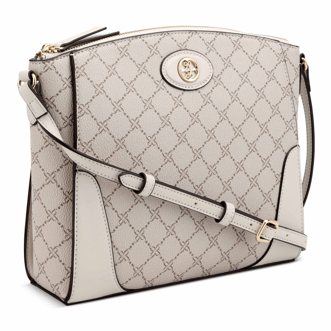 Discover the Nine West Innes Crossbody Mushroom Logo Milk