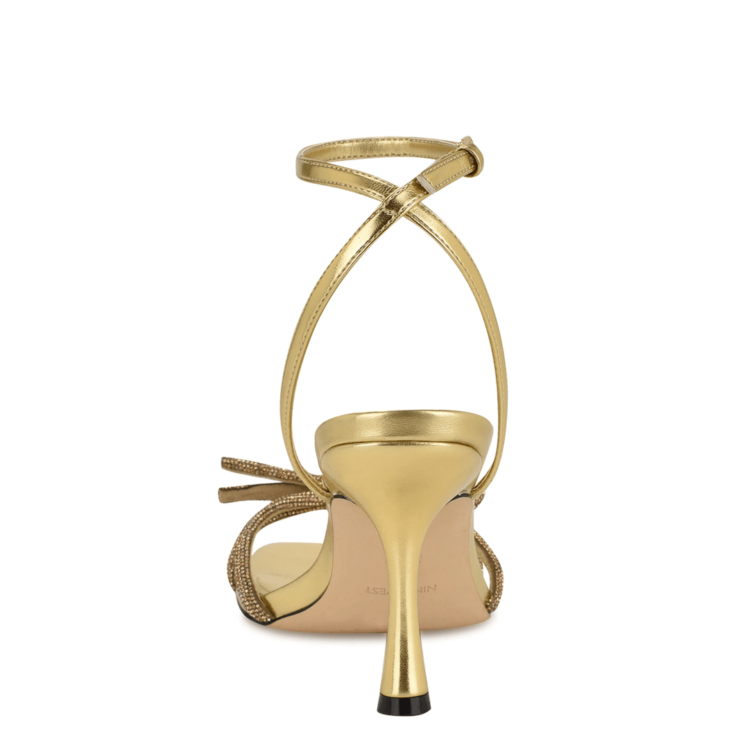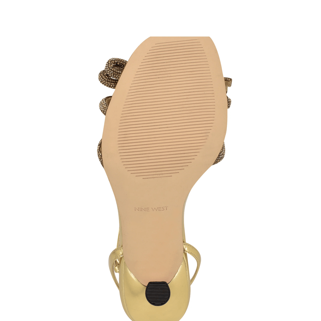 Step into Elegance with Nine West Ivid Rhinestone Bow Sandals Gold