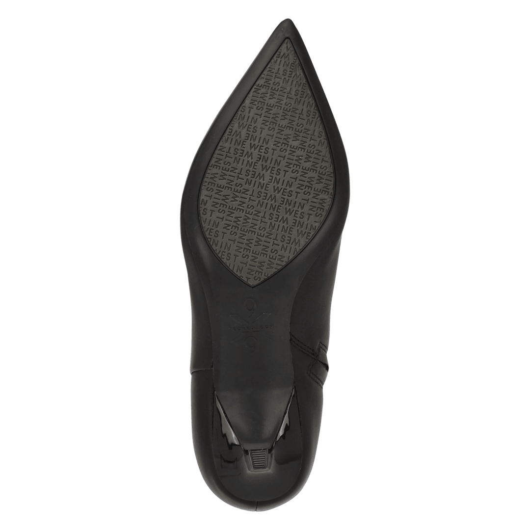 Elevate your wardrobe with the Nine West Kryger 9x9 Pointy Toe Booties in classic black leather. Designed for the modern woman, these booties are the perfect blend of sophistication and comfort, ensuring you dress to impress on any occasion.