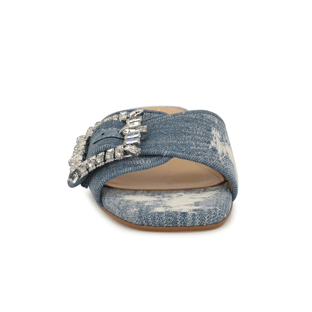 Nine West Laniey Flat Slide Sandals Distressed Denim