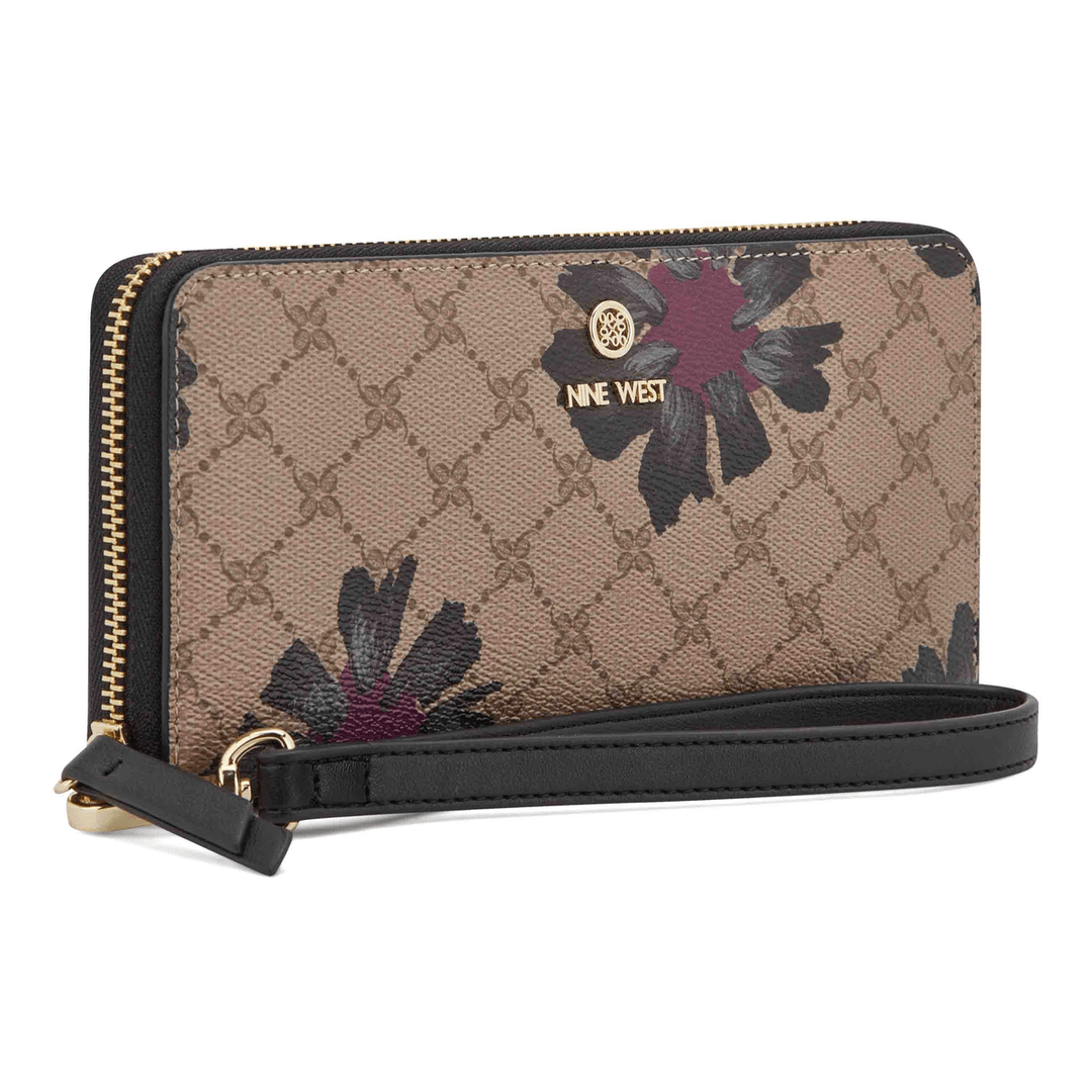 Nine West Lockup 9S Zip Around With Wristlet Floral Logo Black