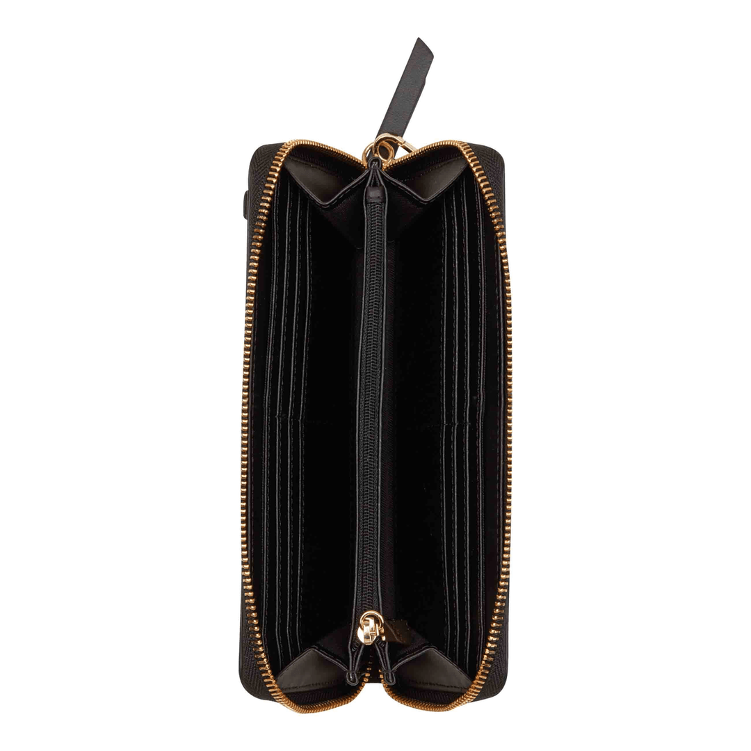 The Nine West Lockup 9S Zip Around With Wristlet Floral Logo Black is not just a wallet; it's a statement piece. Perfect for nights out or daily errands, its sleek design complements any outfit. The wristlet feature allows for easy carrying, making it ideal for busy lifestyles.