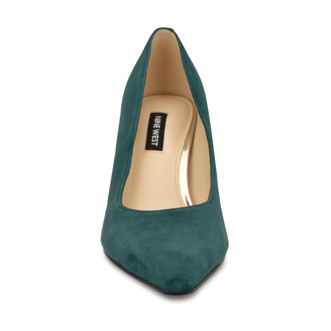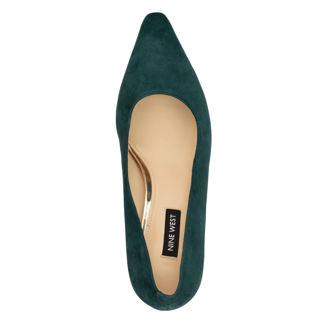 Nine West Monda Leather Block Heel Pumps Dark Green Suede