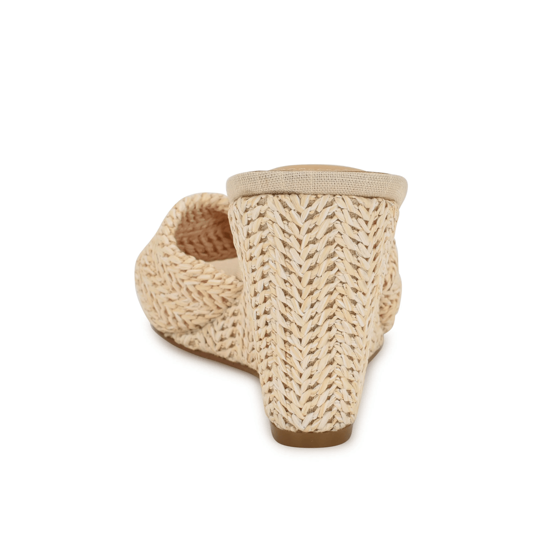 Nine West Nikhil Twist Wedge Sandals Ivory Raffia