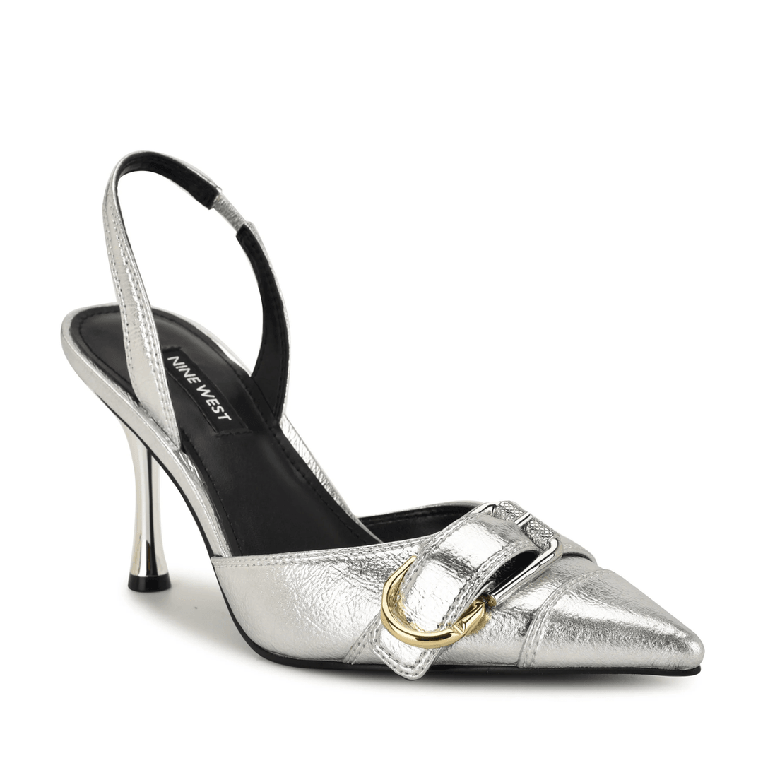 Don’t miss out on the opportunity to own the Nine West Patsie Buckle Slingback Pumps Silver. Shop now and step into style with confidence!