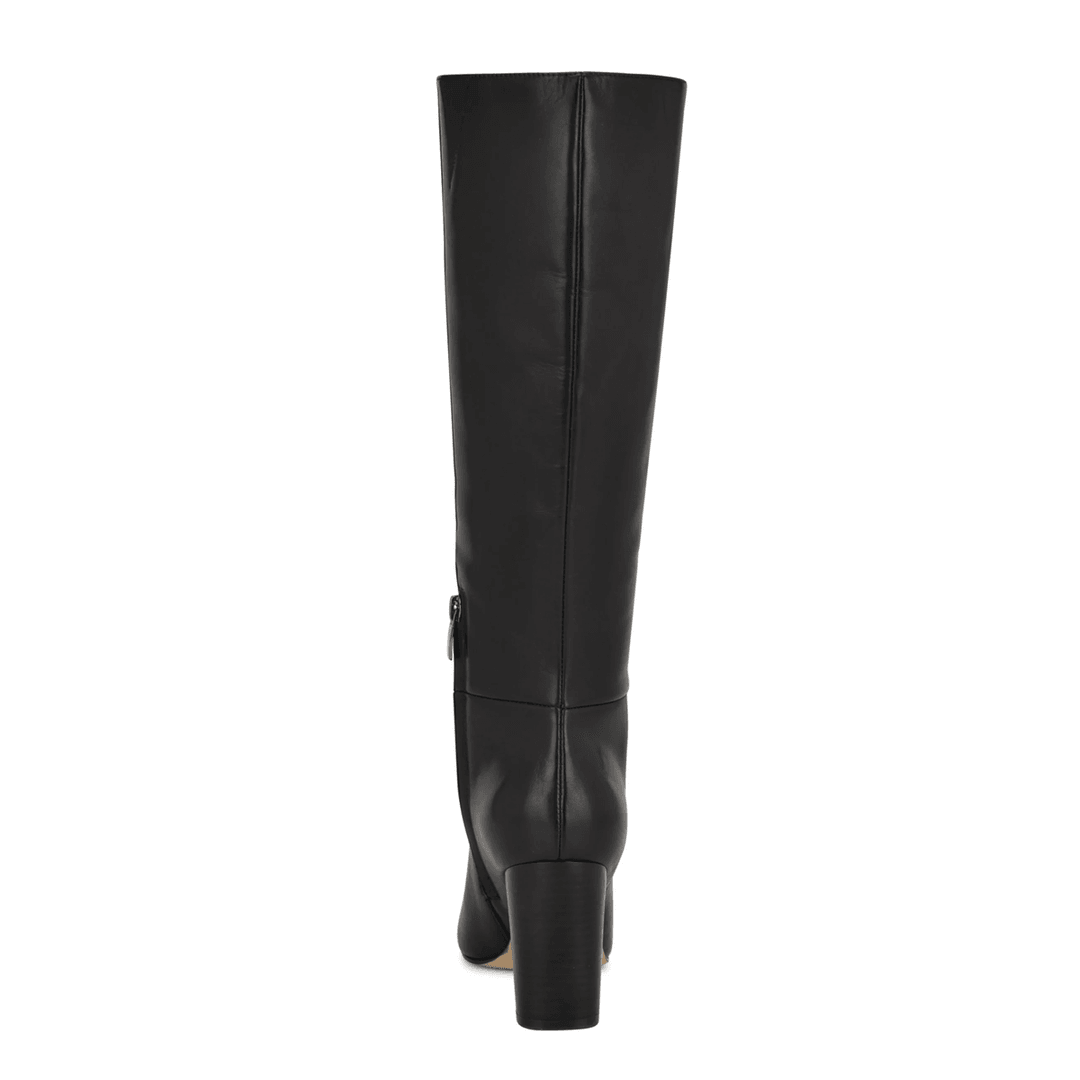 Transform your wardrobe with the stunning Nine West Peachey Heeled Boots in sleek black leather. These dress boots are designed to elevate any outfit, whether you're heading to the office or a night out. With their chic design and sophisticated appeal, they are the perfect addition to your shoe collection.