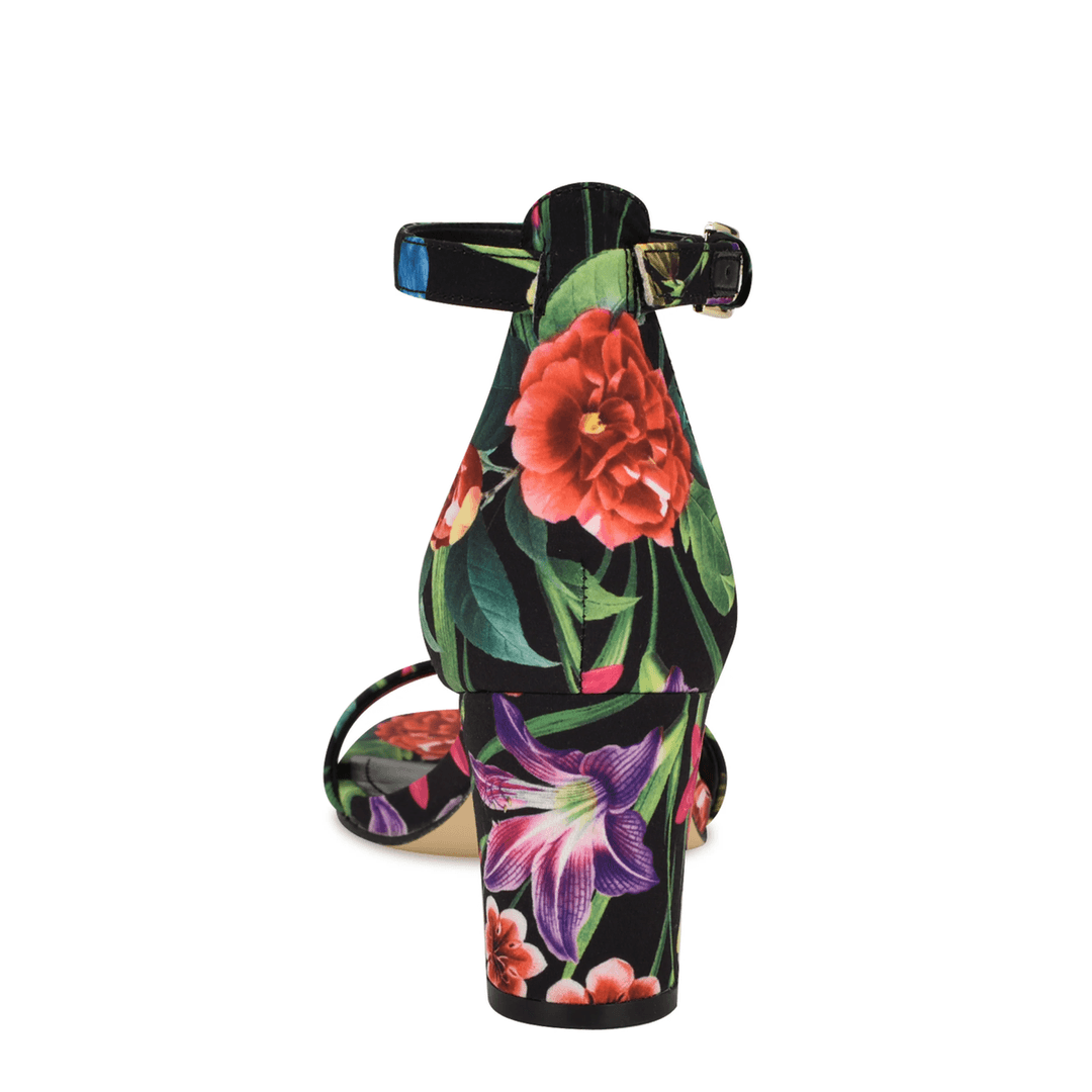 Nine West Pruce Ankle Strap Block Heel Sandals Black Floral