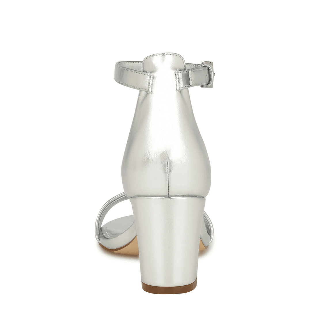 Nine West Pruce Ankle Strap Block Heel Sandals Silver