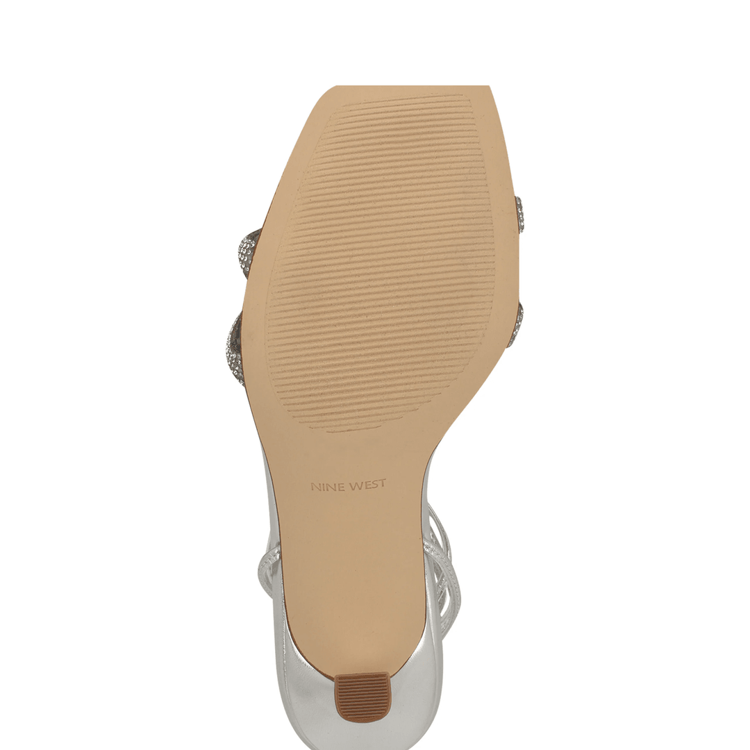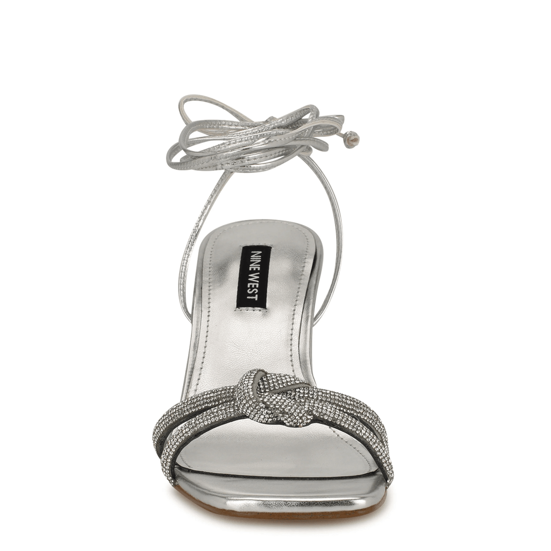 Nine West Raqchel Rhinestone Bow Ankle Wrap Sandals Silver