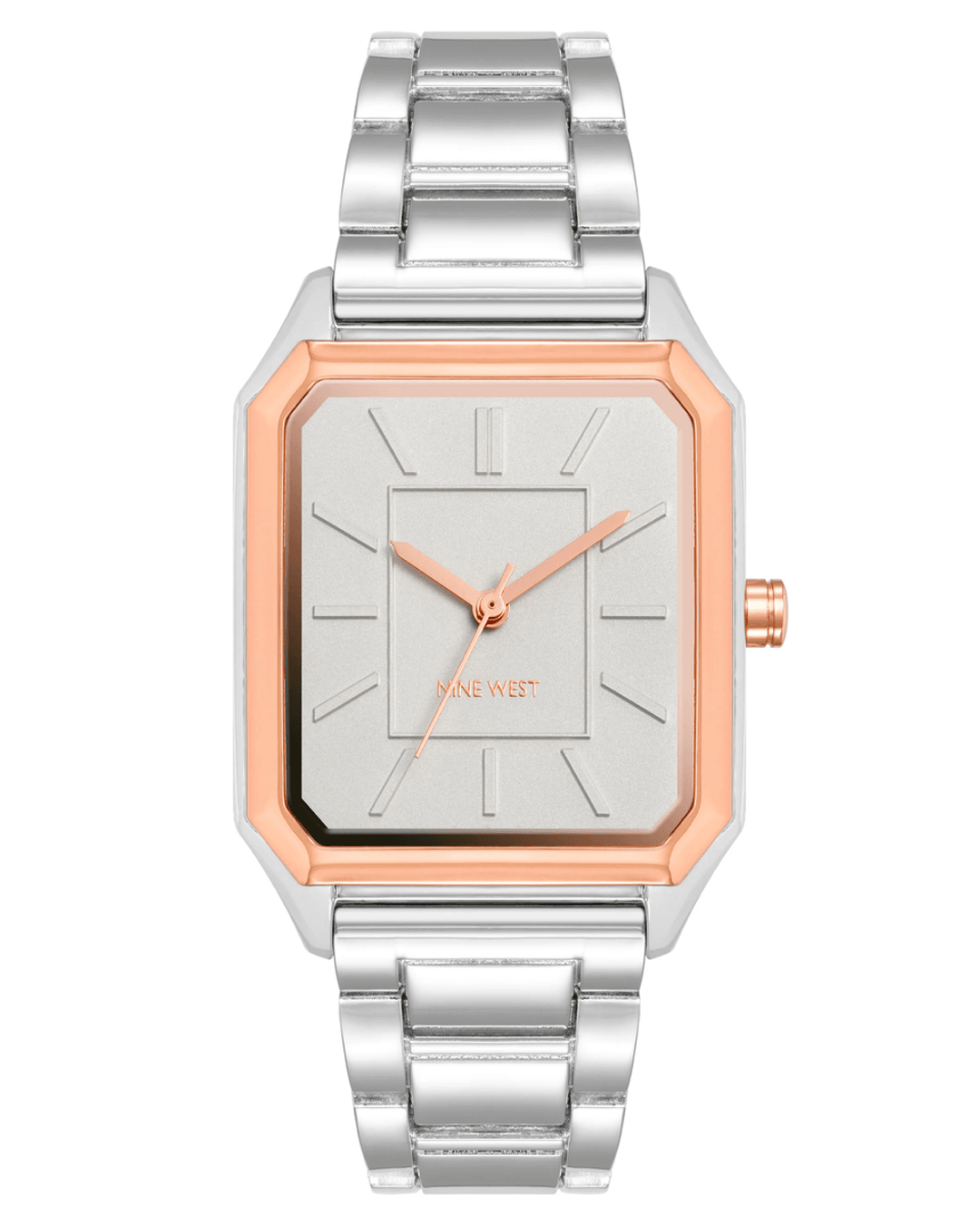 Nine West Rectangular Case Bracelet Watch Silver/Rose Gold