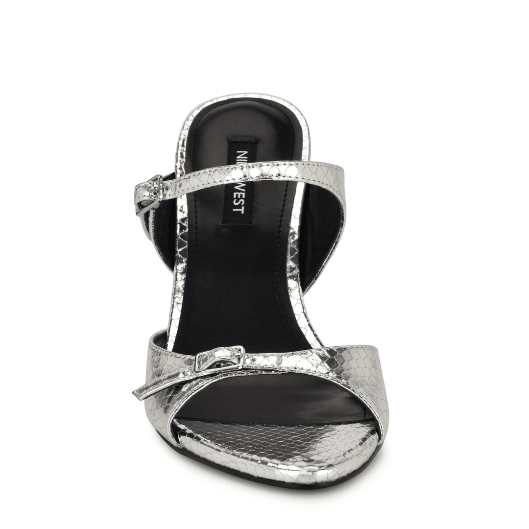 Nine West Reida Mule Sandals Silver Snake