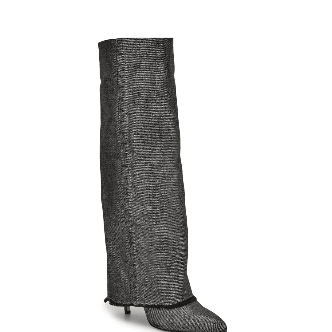 Nine West Rhoree Knee High Dress Boots Silver Metallic Denim