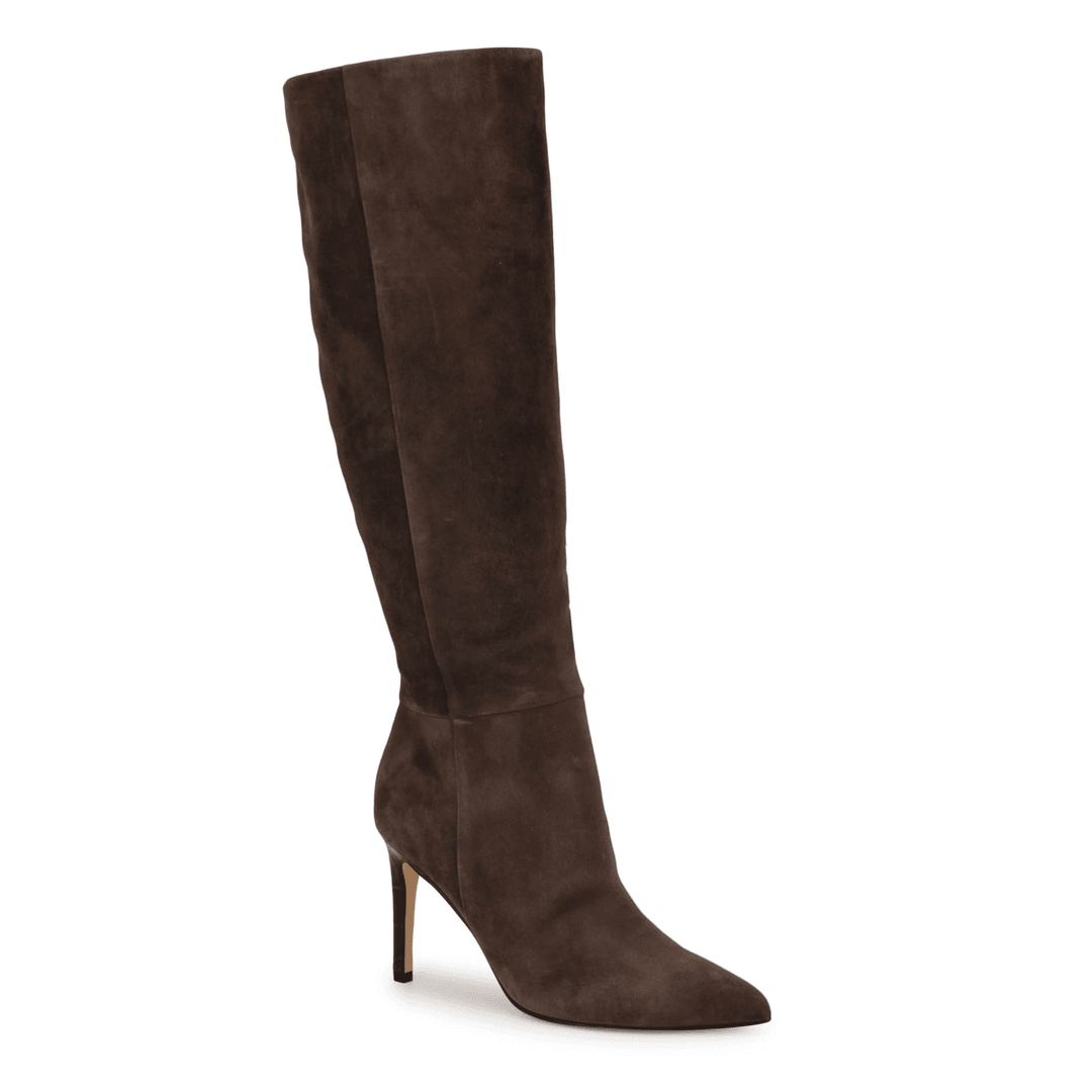 Nine West Richy Wide Calf Heeled Boots Dark Brown Suede