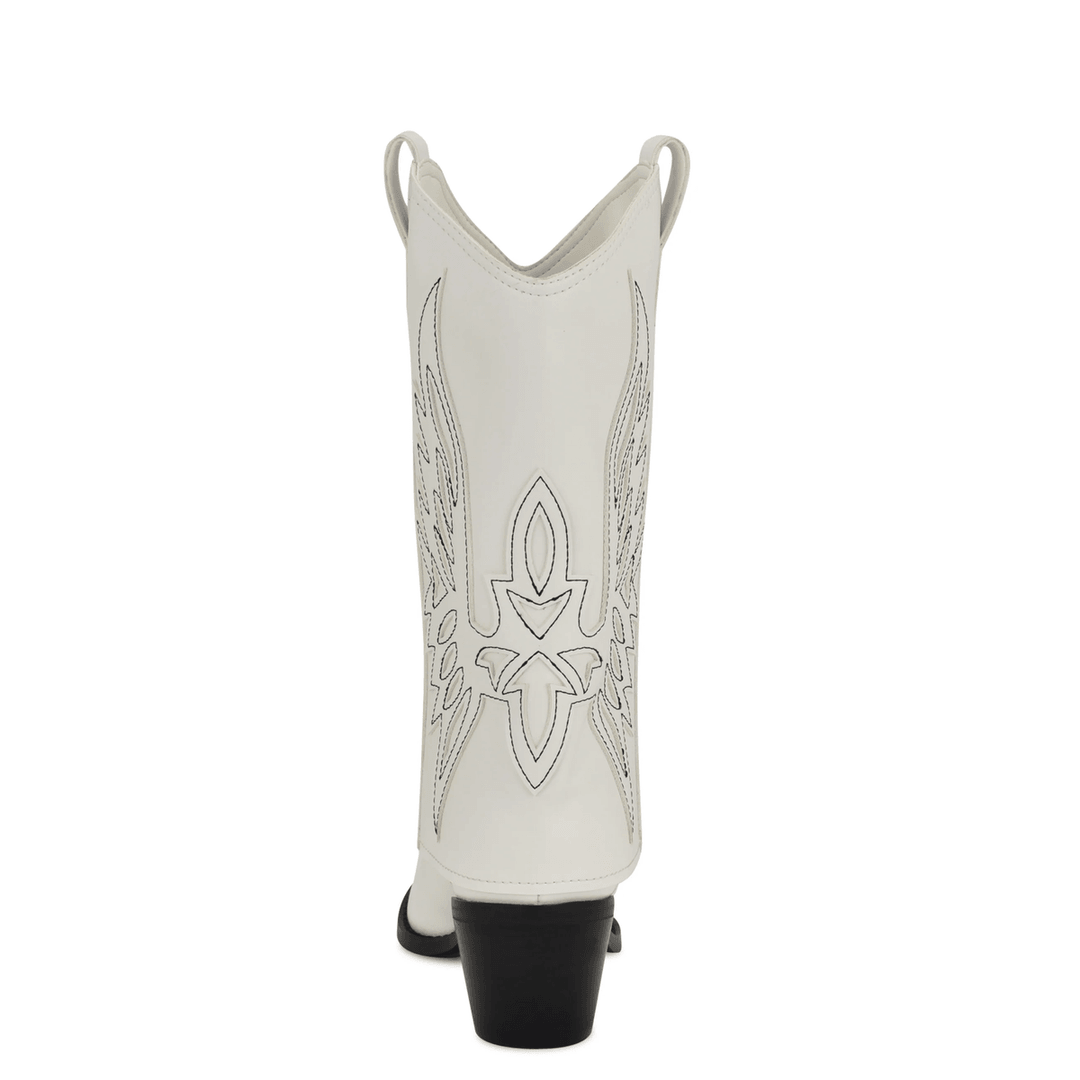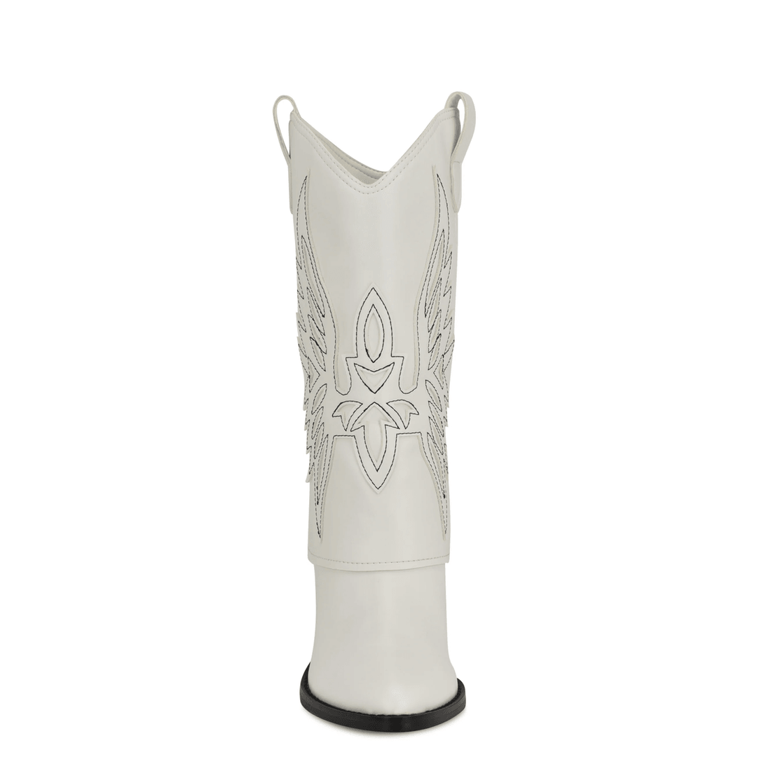 Step into fashion-forward elegance with the Nine West Ringer Detailed Western Boots in White. These stunning mid-calf booties effortlessly blend modern style with classic Western flair, making them a must-have addition to your wardrobe.