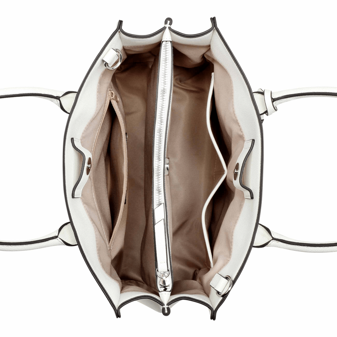 The Nine West Siera Shopper Optic White isn’t just about looks; it’s designed for practicality. Its spacious interior allows you to organize your belongings effortlessly, making it ideal for work, shopping trips, or weekend outings. The elegant design ensures you’ll feel confident and fashionable wherever you go.