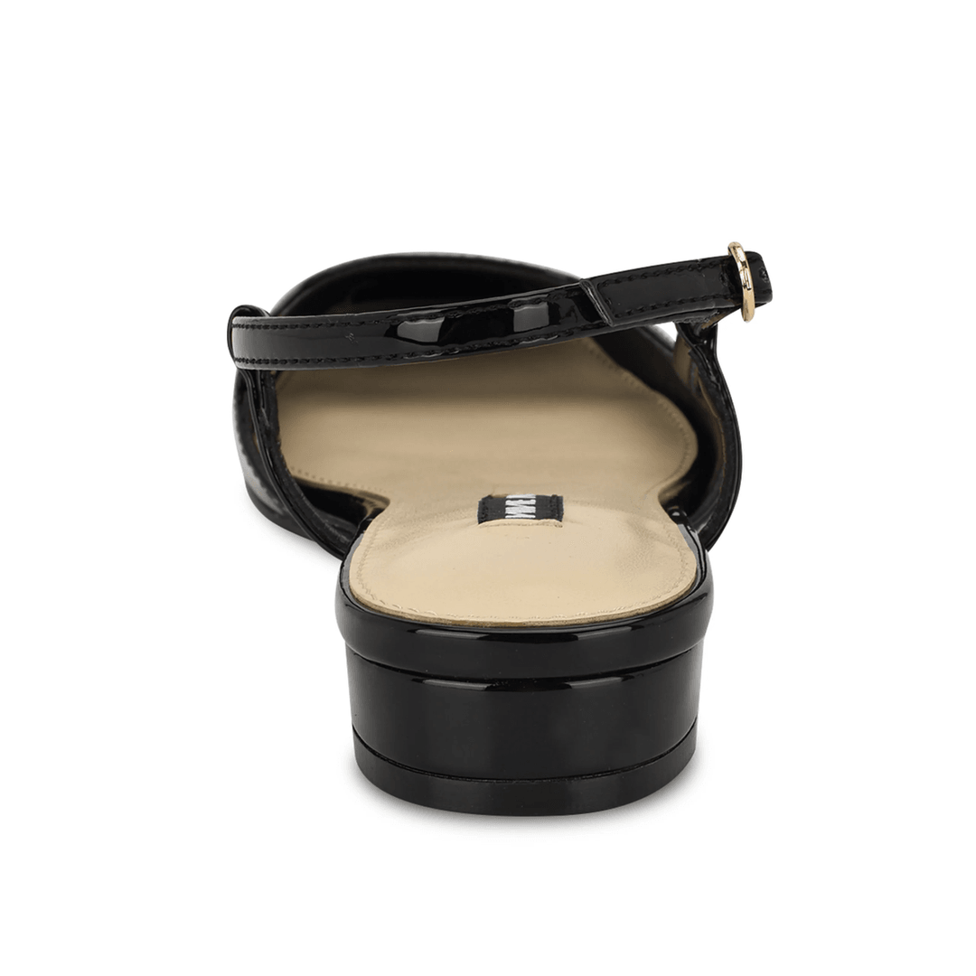 The Nine West Socio Slingback Flats are expertly crafted to combine style and practicality. The adjustable ankle strap provides a secure fit, allowing you to move confidently throughout your day. The sleek black patent finish adds a polished look that pairs effortlessly with dresses, skirts, or tailored pants.