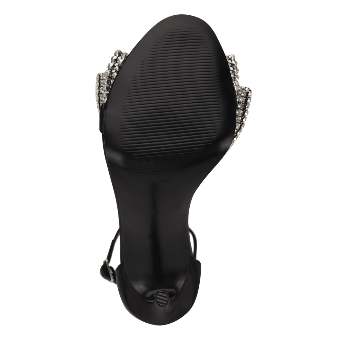 Elevate your footwear collection with the Nine West Tansie Embellished Bow Sandals in Black Satin. These stunning dress sandals are designed to make a statement, whether you're attending a wedding, a night out, or any special occasion.