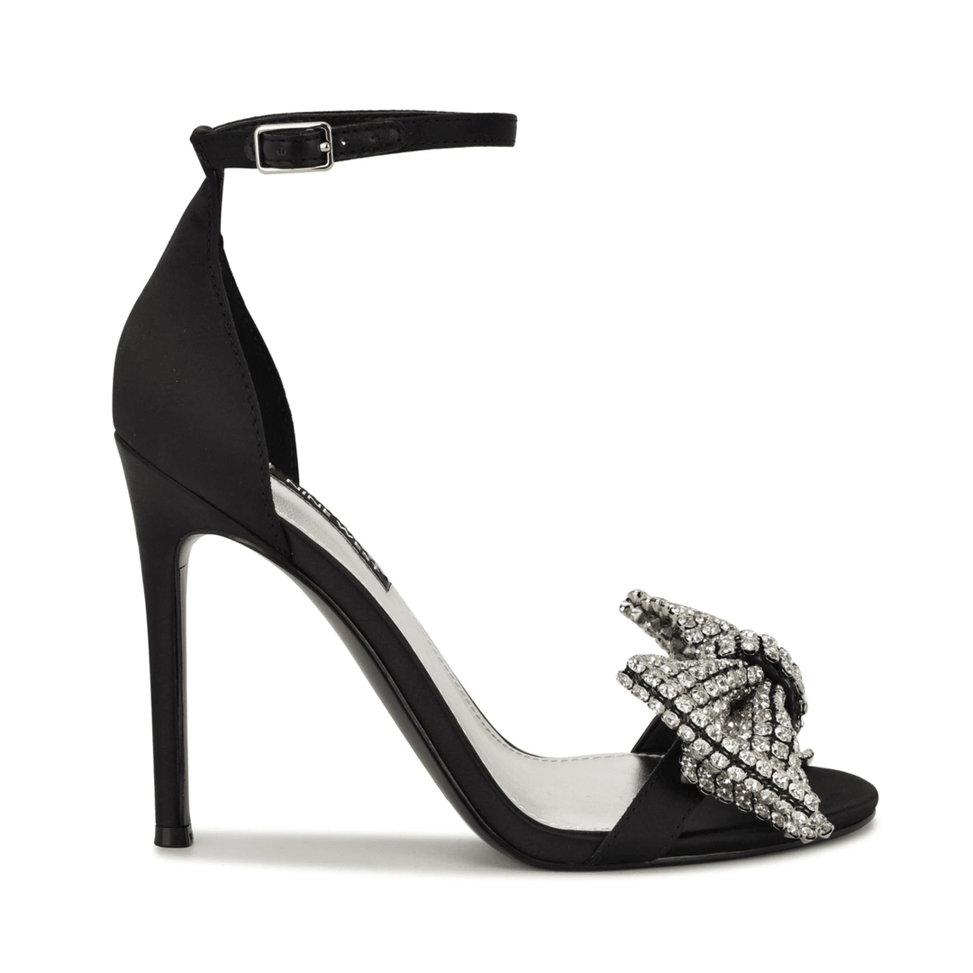 Nine West Tansie Embellished Bow Sandals Black Satin