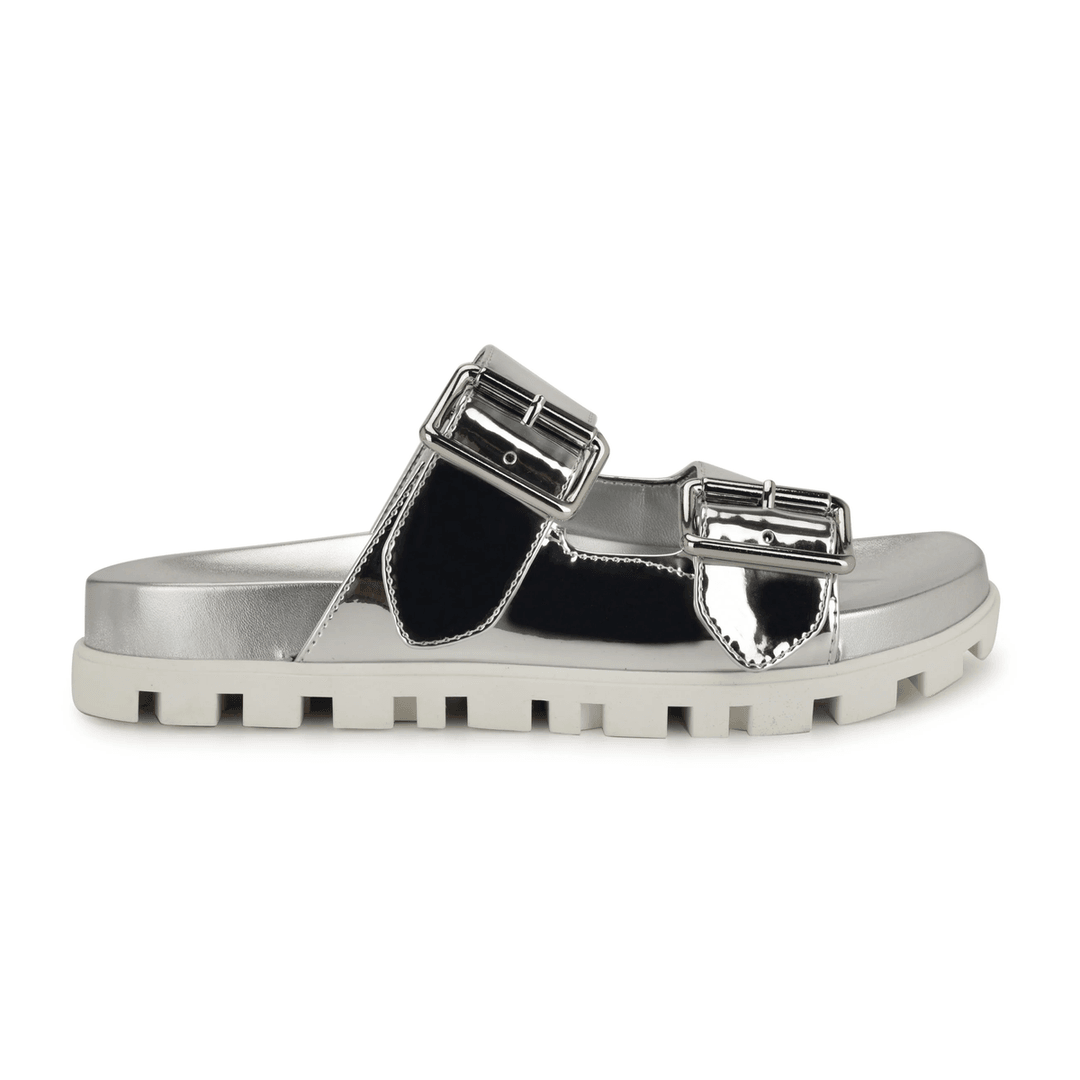 Nine West Timma Footbed Slide Sandals Silver
