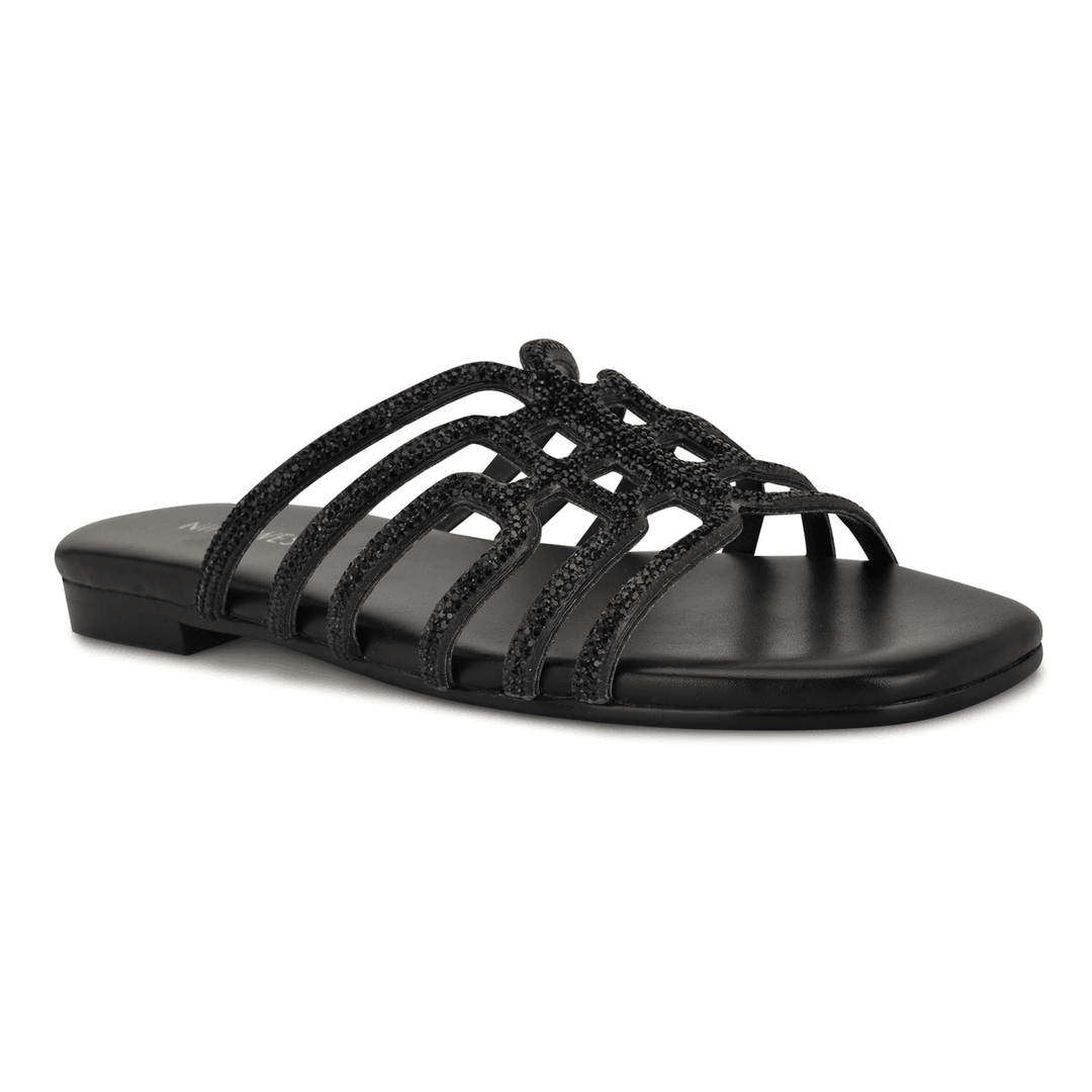 Step out in confidence with the Nine West Timy Embellished Flat Sandals Black. These stylish sandals are designed to enhance any outfit while providing ultimate comfort. With a modern square toe and a chic strappy silhouette, the Timy sandals are perfect for both casual outings and dressier occasions.
