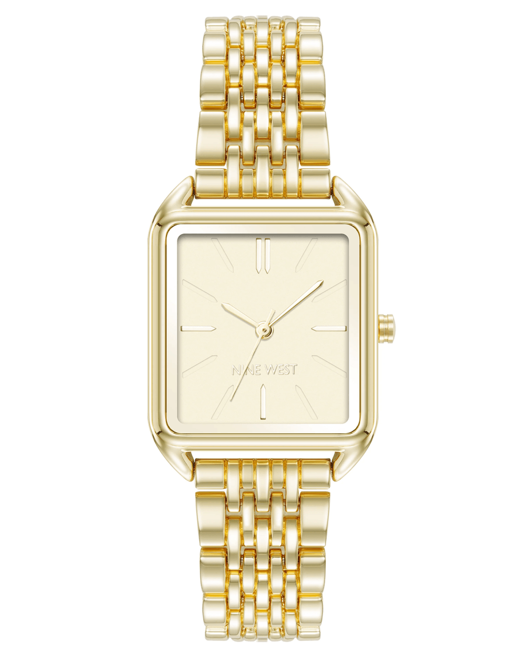 Elevate your accessory game with the Nine West Vintage-Inspired Metal Bracelet Watch Gold. Add this stunning watch to your collection today and experience the perfect blend of vintage charm and modern luxury!