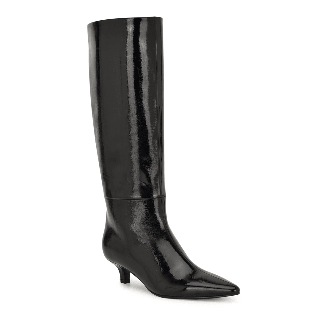 Nine West Willa Kitten Heel Boots Black Crinkle Patent